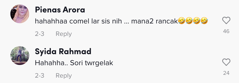 Dalam pada itu, tinjauan di ruangan komen mendapati rata-rata netizen turut terhibur melihat gelagat wanita tersebut.