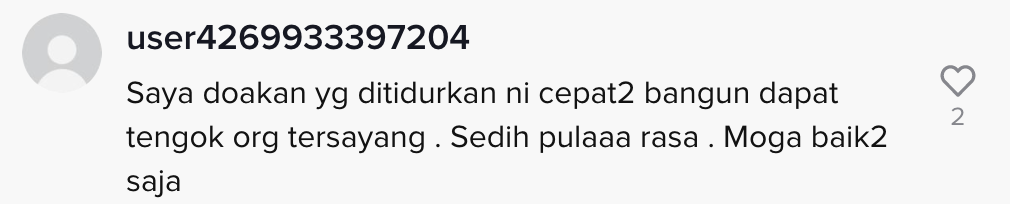 "Saya doakan yang ditidurkan ni cepat-cepat bangun dapat tengok orang tersayang" – Netizen