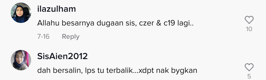 Dalam pada itu, tinjauan di ruangan komen mendapati rata-rata netizen turut bersimpati dengan apa yang menimpa wanita tersebut. Malah, ramai yang berkongsikan pengalaman mereka mengenai situasi itu.