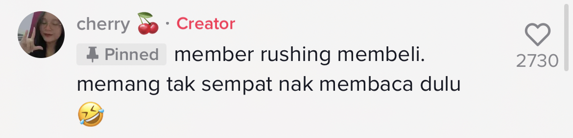 Ketika artikel ini ditulis, video berkenaan telah meraih 1.1M views, 132.5K likes serta 1.3K comments di TikTok.