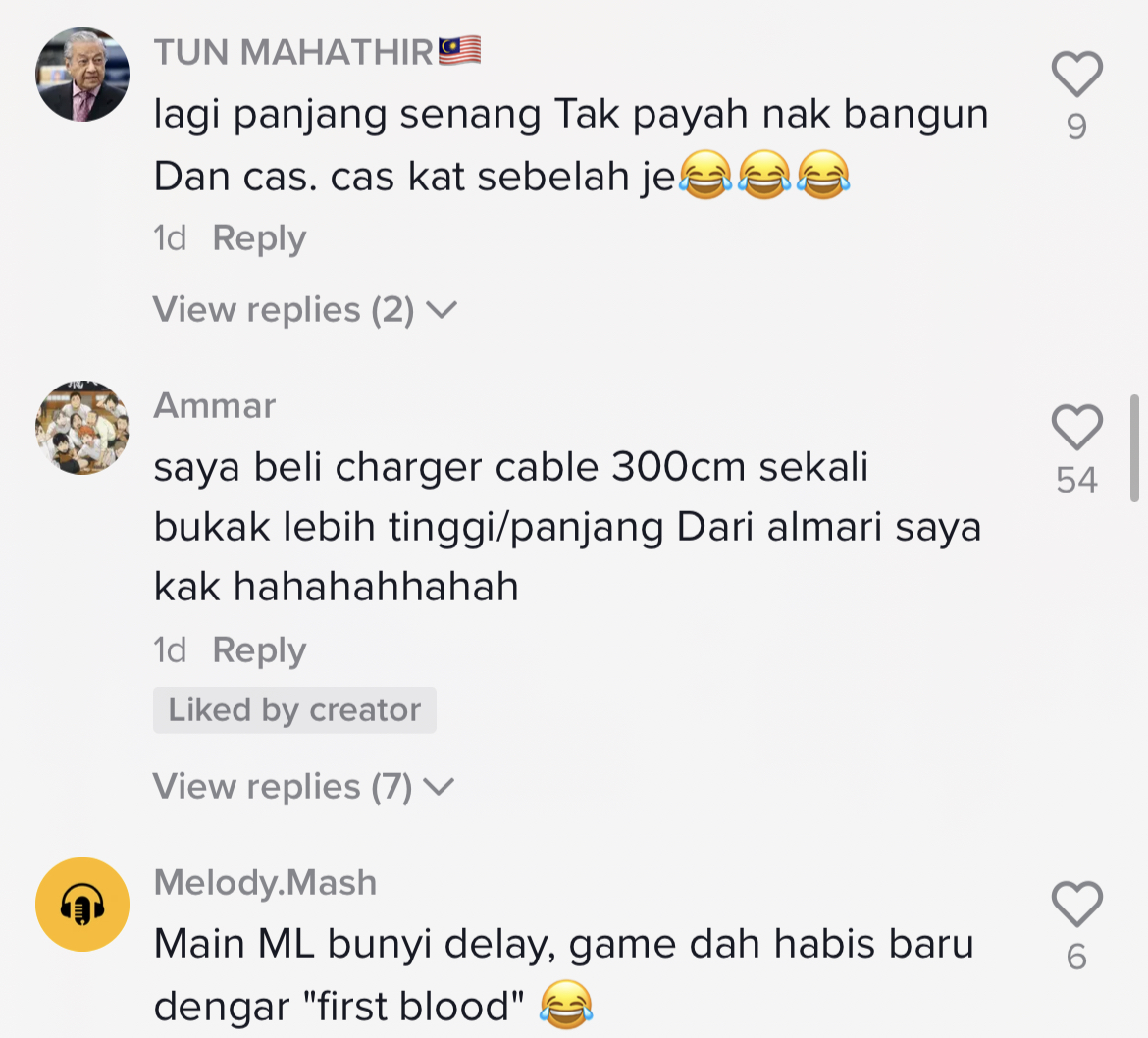 Sementara itu, tinjauan di ruangan komen mendapati rata-rata netizen turut terhibur melihat panjang earphone tersebut.