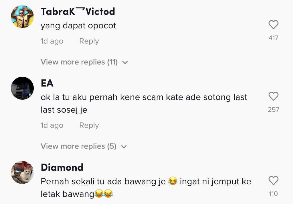 Berikut di bawah adalah antara komen daripada netizen di TikTok: