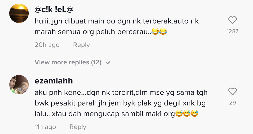 "Jangan dibuat main oo dengan nak terberak. Auto nak marah semua orang" – Netizen