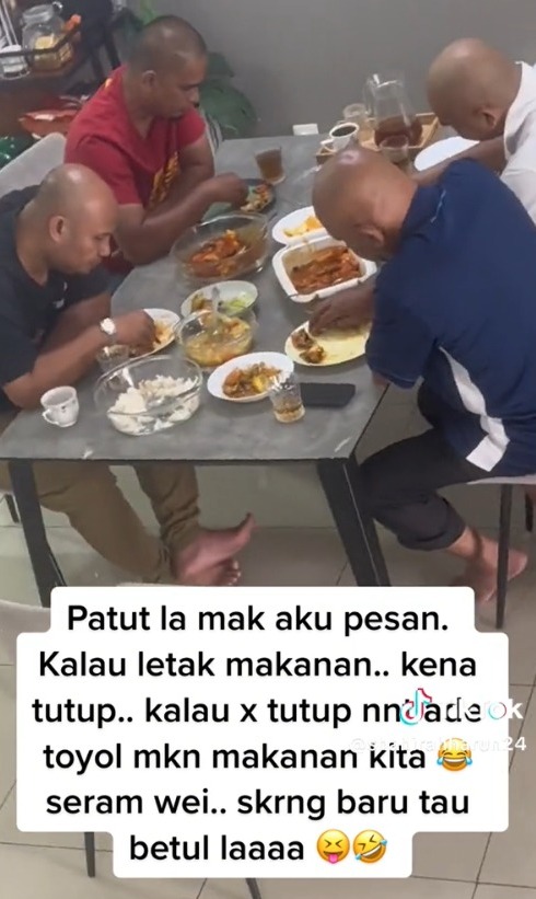 Mak pesan tutup makanan tapi tiba-tiba 4 lelaki berkepala botak datang beraya