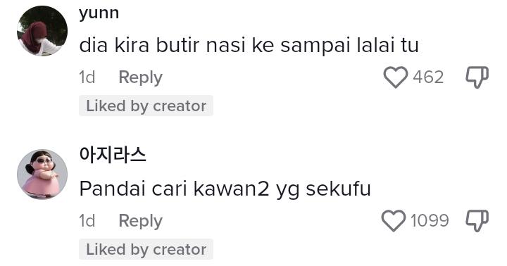 Berikut di bawah merupakan antara komen menarik daripada netizen di TikTok: