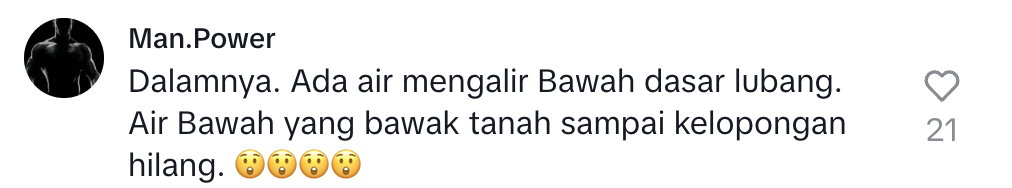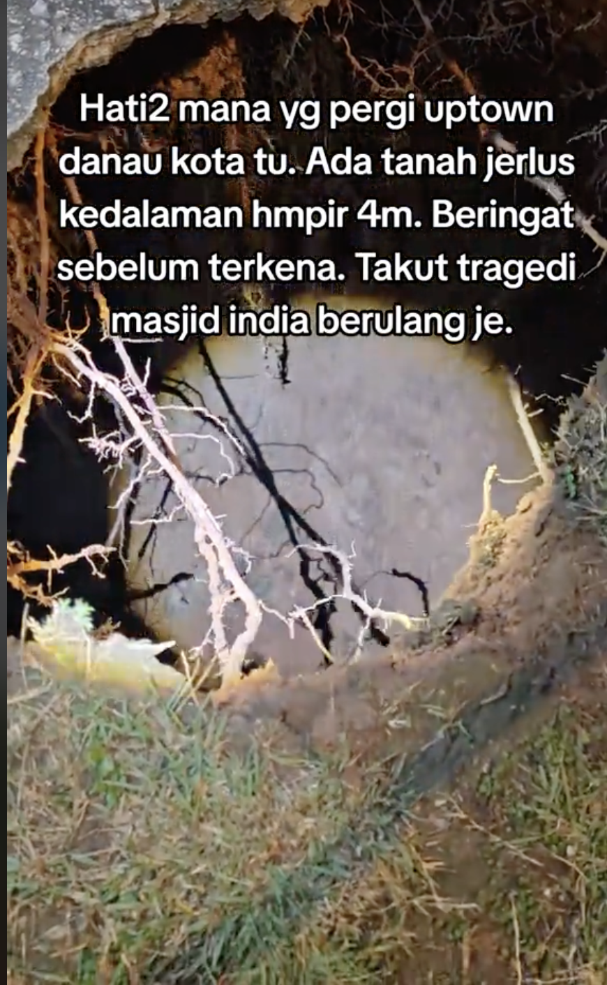 Difahamkan, kedalaman tanah jerlus itu adalah hampir empat meter. Malah, dia juga mengingatkan bagi pengjung yang lalu di kawasan itu agar berhati-hati.