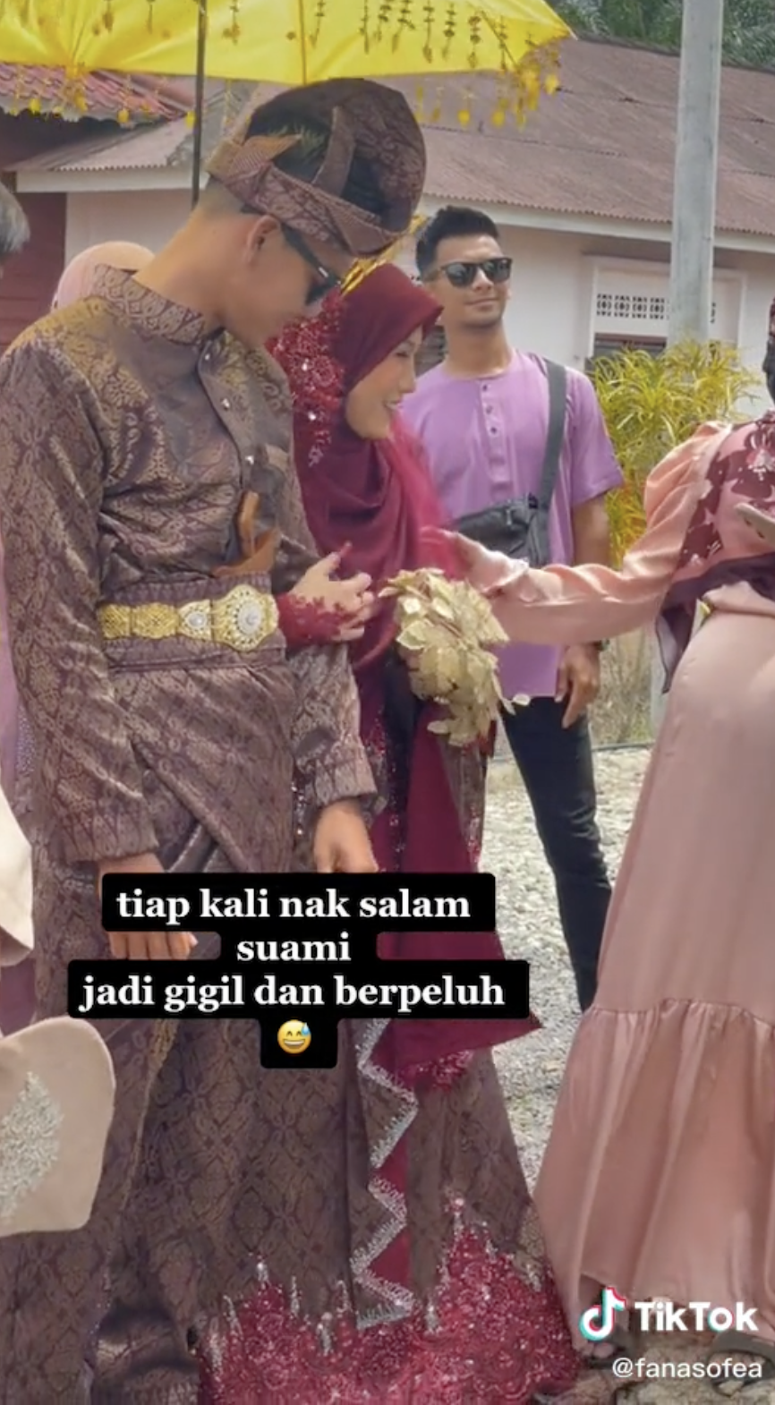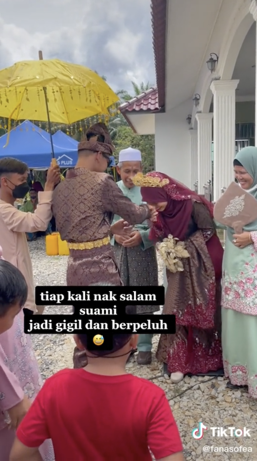 Namun, lain pula dengan video yang tular ini apabila gelagat pasangan pengantin yang menggigil setiap kali memegang suaminya telah mencuri tumpuan ramai.