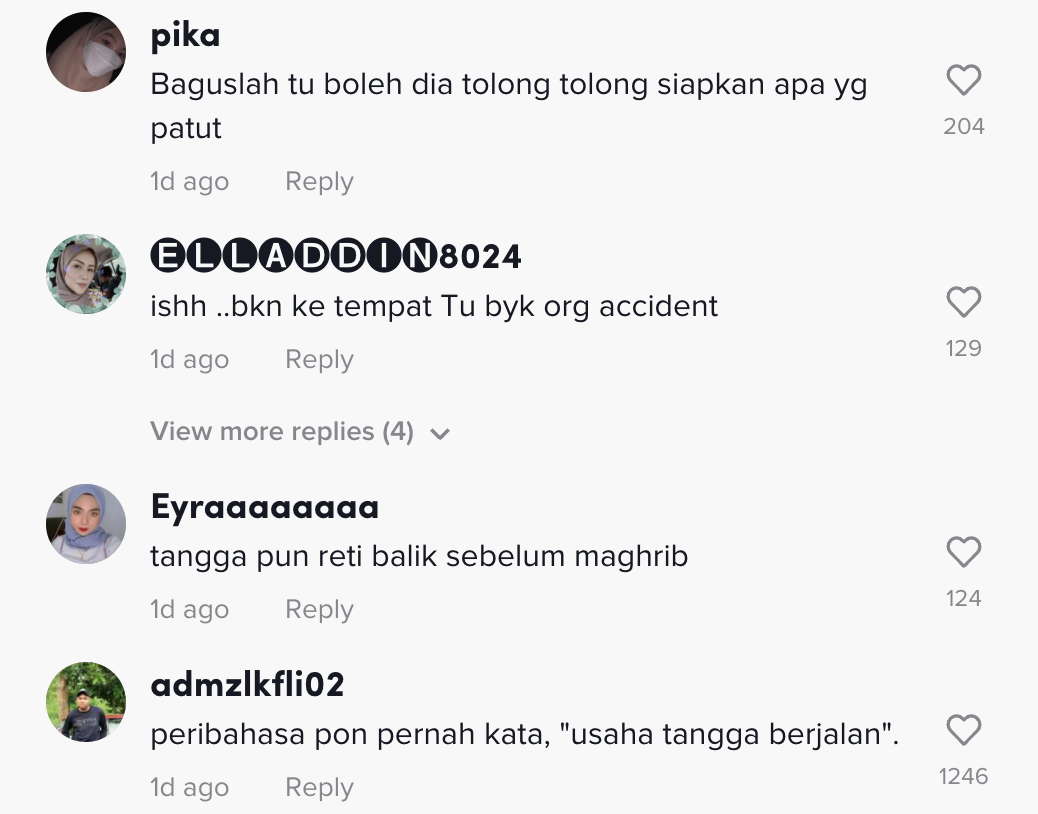 Berikut di bawah adalah antara komen daripada netizen di TikTok: