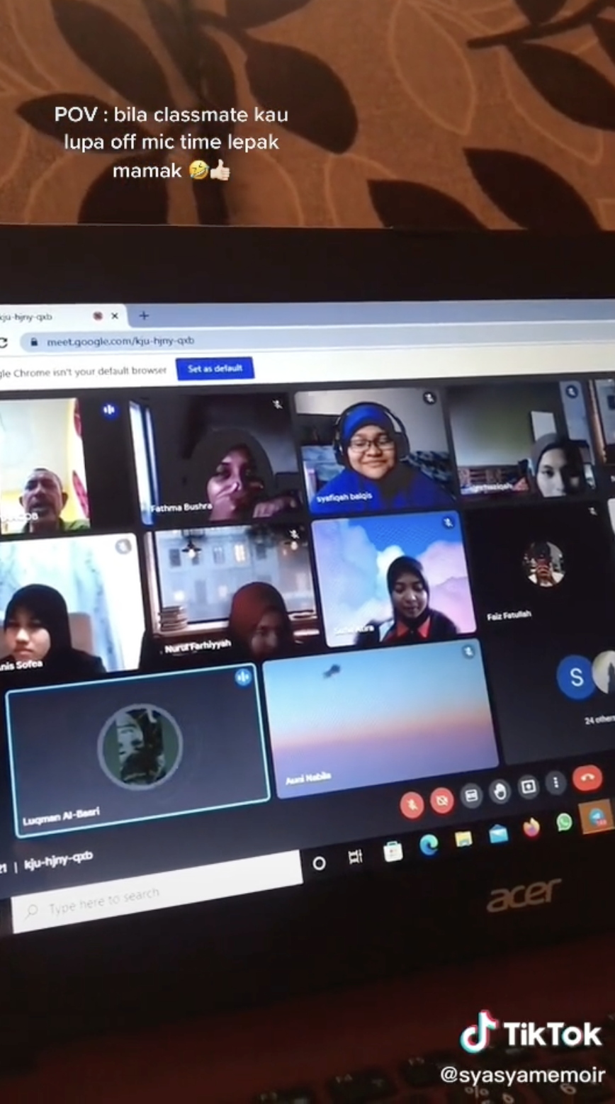 Namun, lain pula dengan video ini apabila seorang pelajar lupa menutup mikrofonnya sedang lepak mamak semasa kelas online telah menarik perhatian.