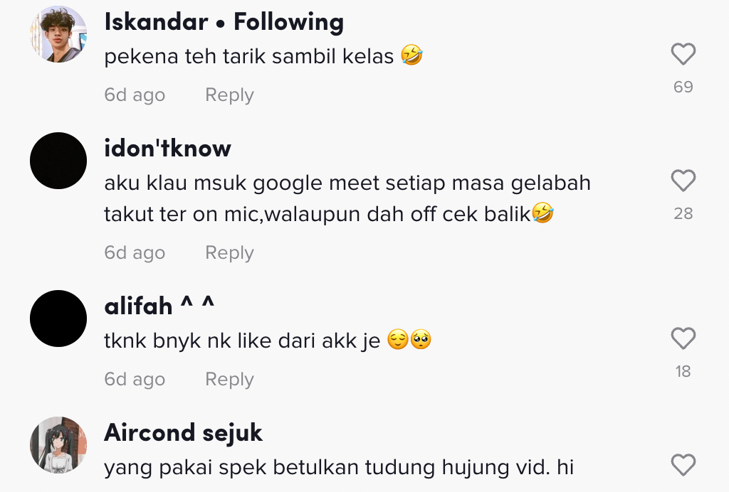 Berikut di bawah adalah antara komen menarik daripada netizen di TikTok: