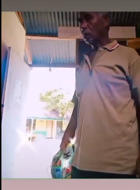 Namun tidak lama selepas itu, kelihatan ayah kanak-kanak itu muncul di belakang dan terus menendang punggungnya sebaik saja melihat aksi anaknya itu.