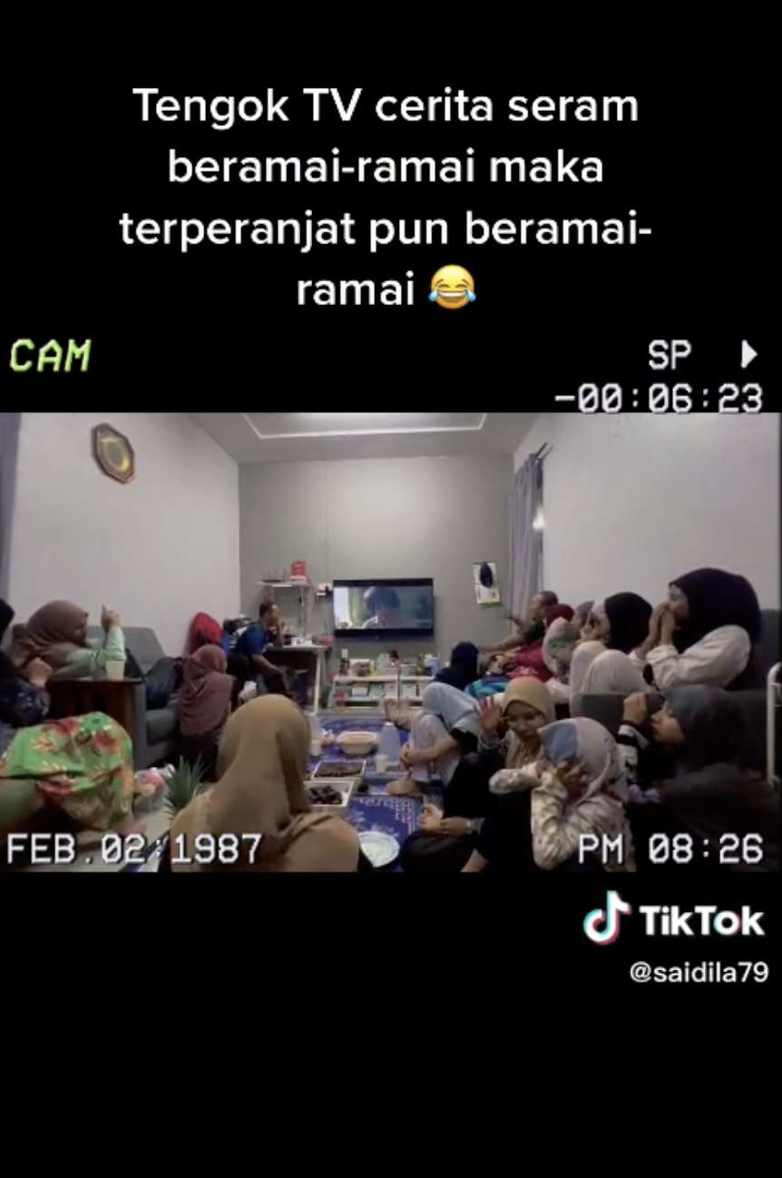 Sama seperti video di TikTok ini yang memaparkan sebuah keluarga besar menonton cerita seram dan terkejut bersama telah mencuit hati ramai.
