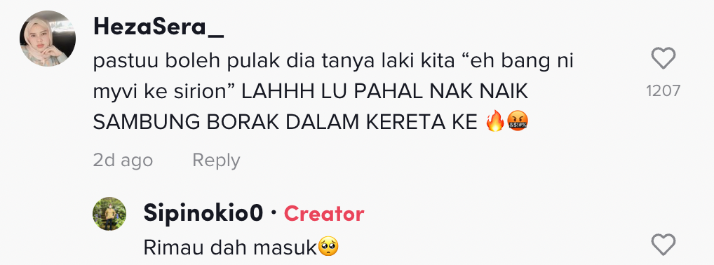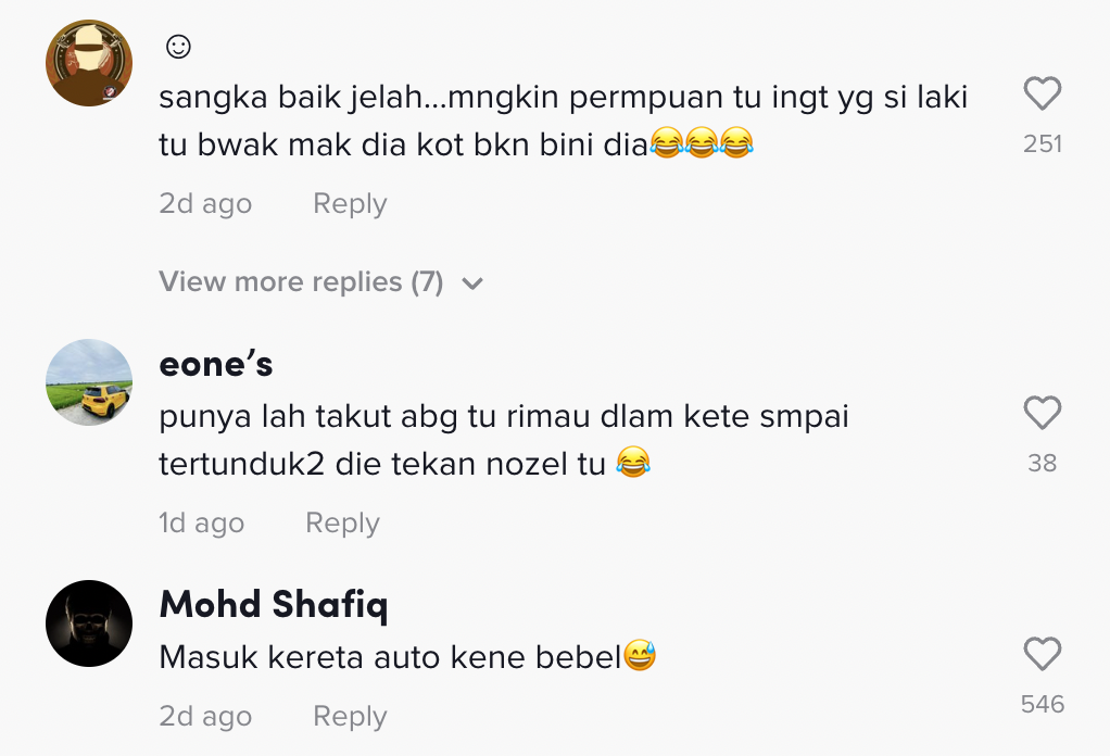 "Masuk kereta auto kena bebel haha" – Netizen