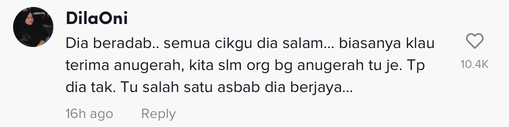 Berikut di bawah merupakan antara komen menarik daripada netizen di TikTok: