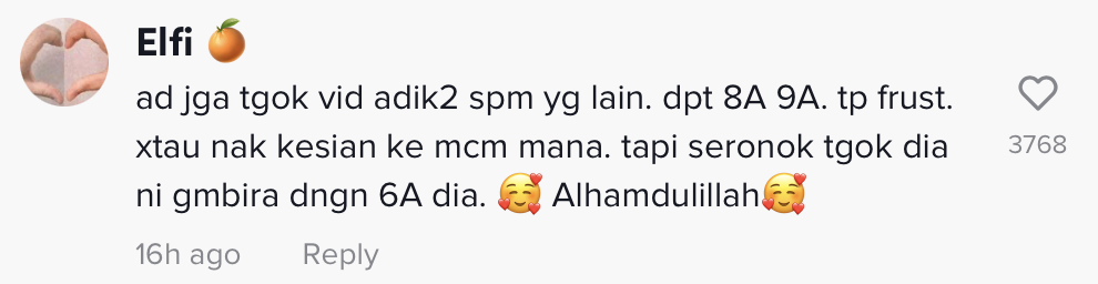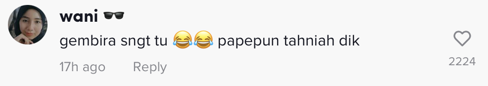 Susulan tularnya video tersebut yang kini meraih sehingga 3.1M tontonan, 422.9K tanda suka dan 4,779 komen di TikTok, rata-rata netizen turut terhibur melihat reaksi pelajar lelaki itu.