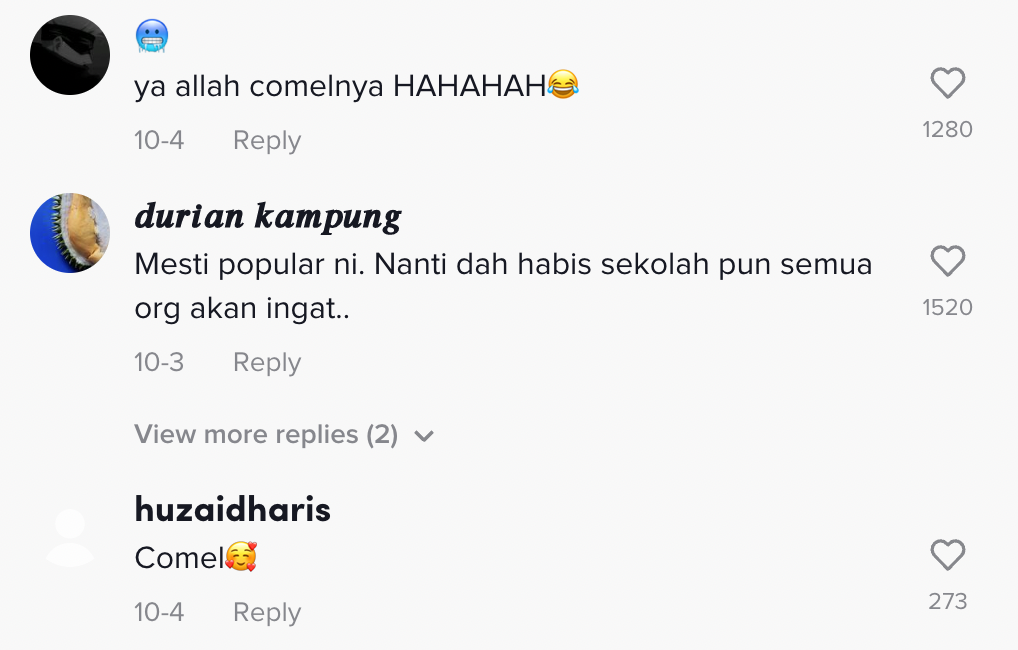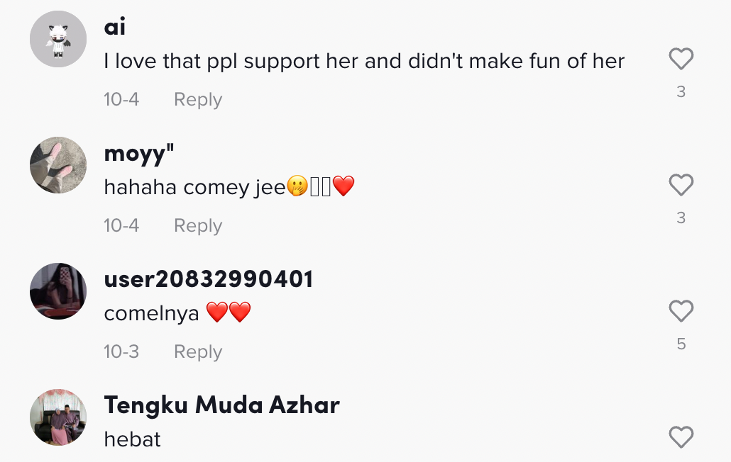 Berikut di bawah adalah antara komen daripada netizen di TikTok: