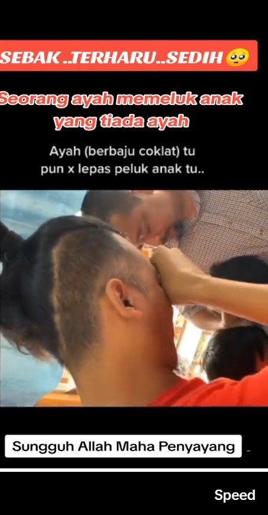 Menerusi video tersebut, selepas sahaja pelajar yang bergelar anak yatim diminta kekal berdiri, seorang bapa bertindak mendatangi dan memeluk seorang pelajar lelaki yang kekal berdiri.
