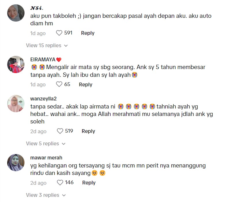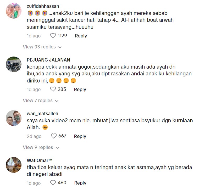 Rata-rata komen yang diberikan netizen menunjukkan reaksi sebak terhadap video berkenaan.