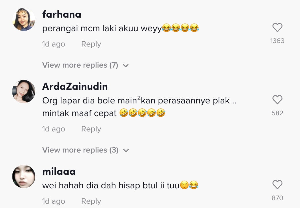Berikut di bawah adalah antara komen menarik daripada netizen di TikTok: