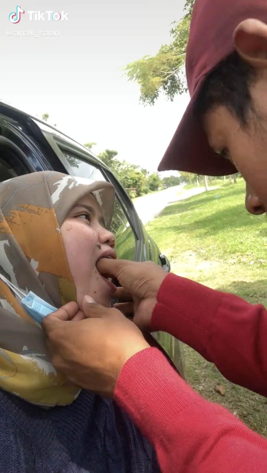 Menerusi video dari @anak_saari, kelihatan semasa itu dia dan teman lelakinya berada di dalam sebuah kereta dan terpaksa berhenti di tepi jalan kerana ada tulang tersangkut di dalam mulutnya.