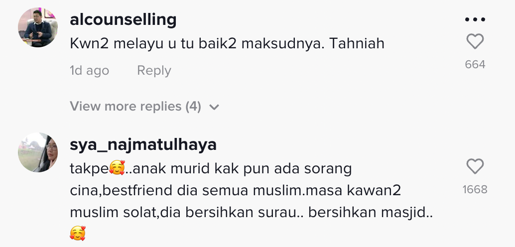 Berikut di bawah adalah antara komen daripada netizen di TikTok: