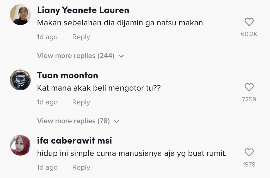 Berikut di bawah adalah antara komen daripada netizen di TikTok: