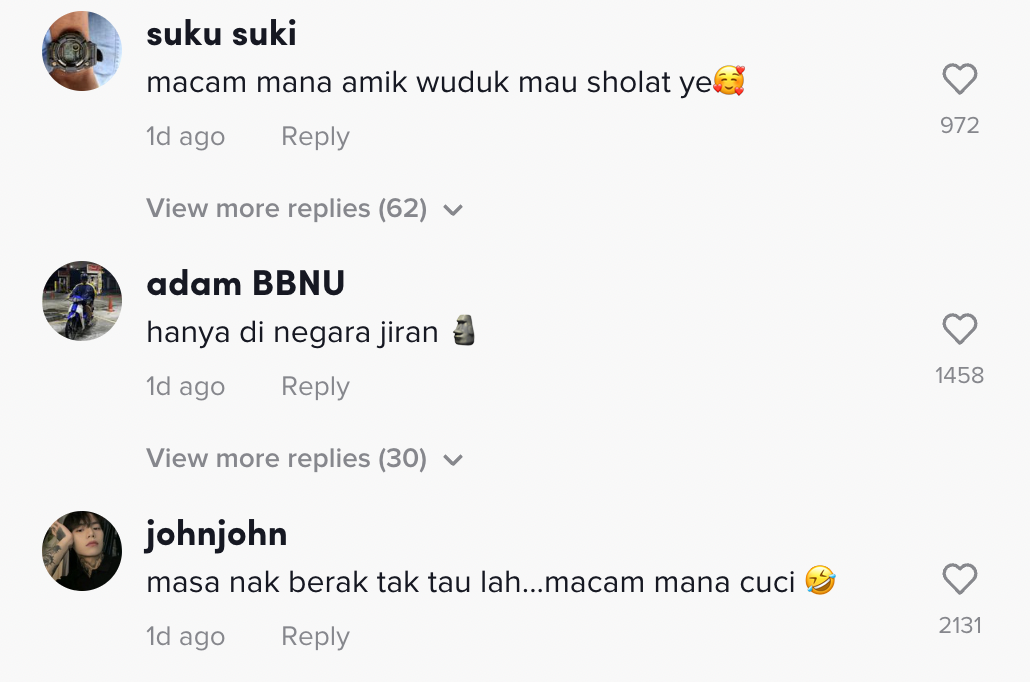 "Masa nak berak tak tahu lah macam mana dia cuci" – Warganet