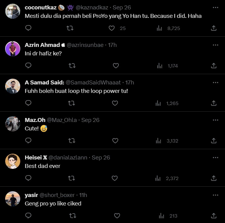 Itulah yang ditunjukkan melalui sebuah video di Twitter memaparkan seorang bapa sedang bermain yoyo sambil diperhatikan anak-anaknya.