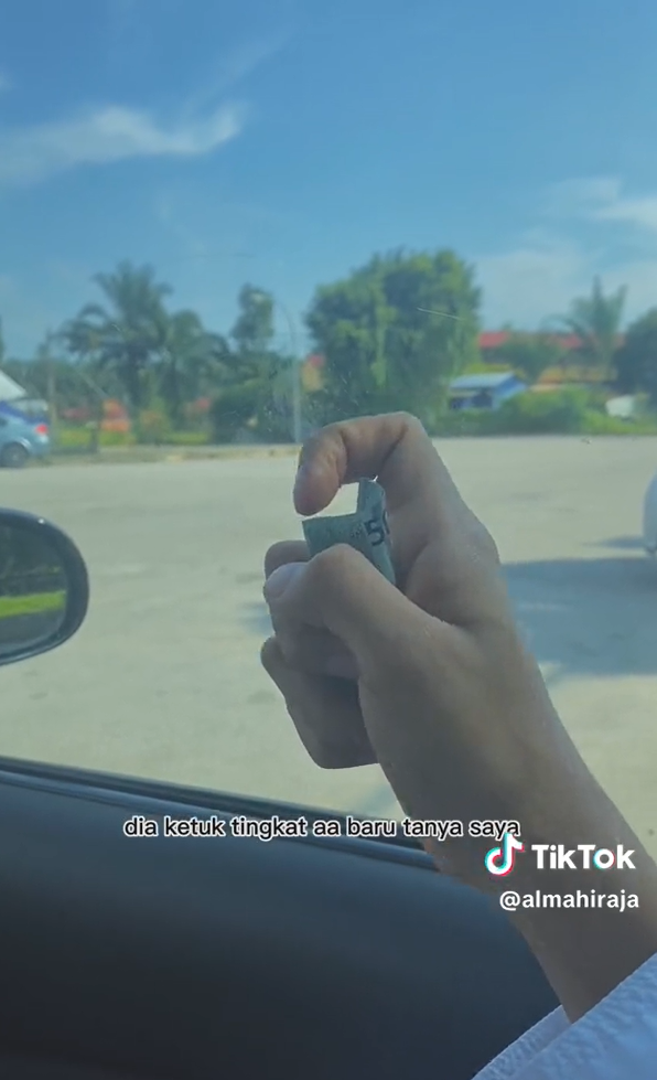 Di akhir video berkenaan, lelaki itu cuba menceritakan kembali bagaimana dia disapa dari luar kereta sambil memegang wang RM50 di tangannya.