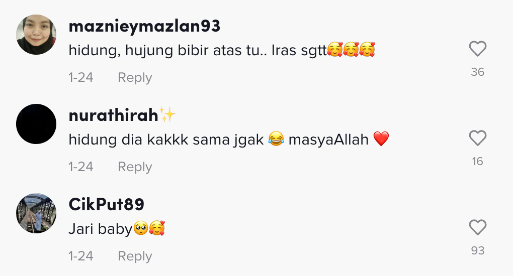 "Hidung dia pun ada iras-iras dah tu. Cutenya" – Netizen
