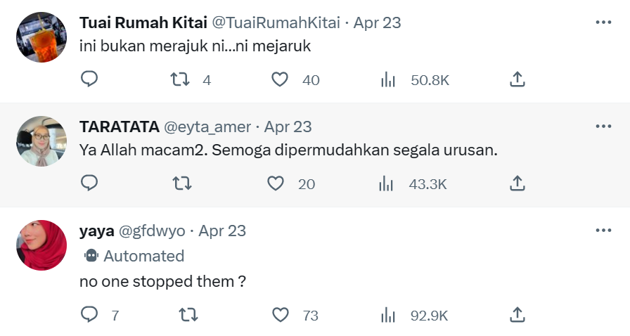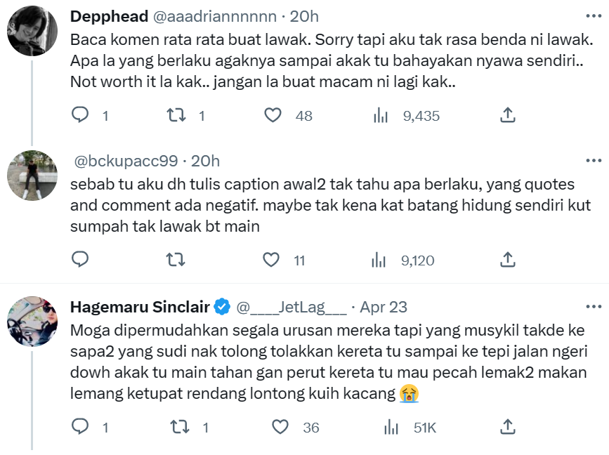 Berikut di bawah merupakan antara komen menarik daripada netizen di Twitter: