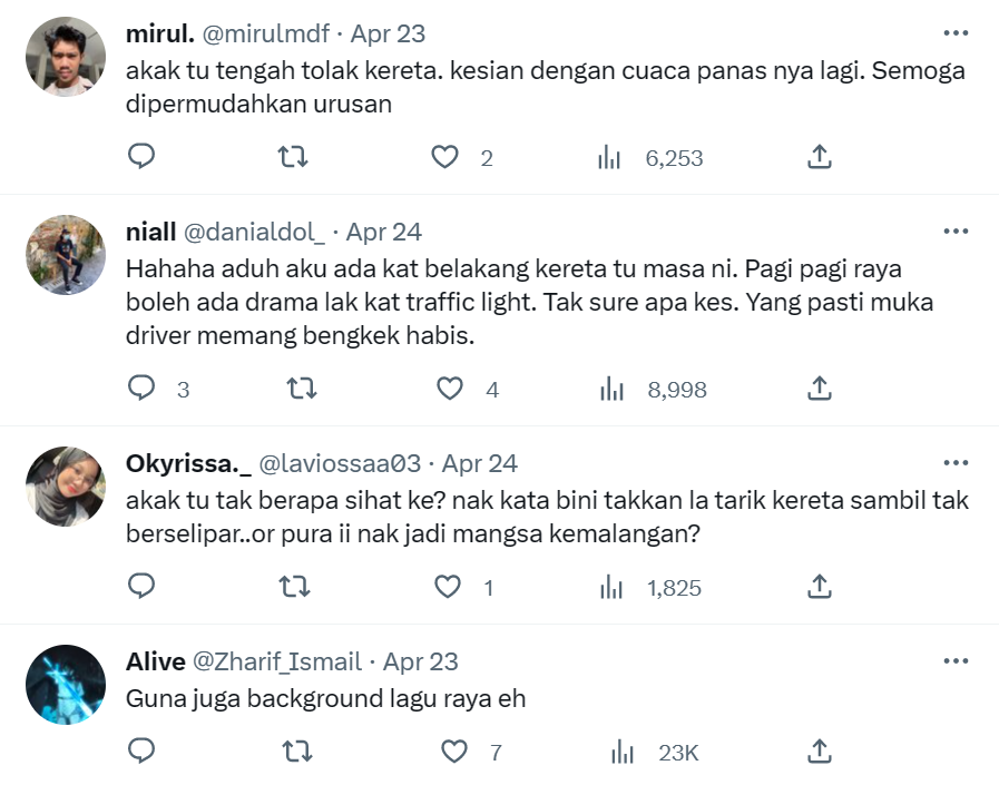 Namun lain pula yang jadi, apabila tular dalam sebuah video di Twitter yang menunjukkan seorang wanita memberhentikan sebuah kereta telah meraih tumpuan ramai.