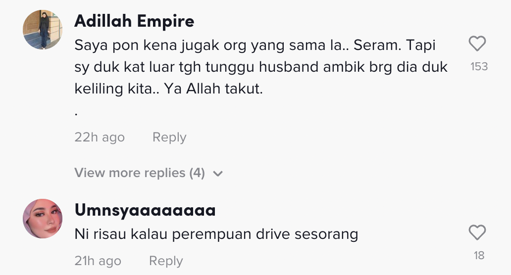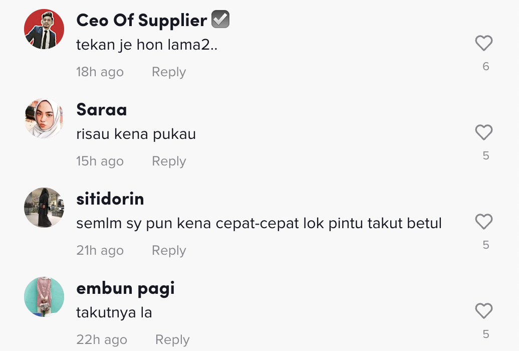 Dalam pada itu, tinjauan di ruangan komen mendapati rata-rata netizen turut memberikan pelbagai reaksi dan menasihatkan agar lebih berhati-hati jika berseorangan diri.