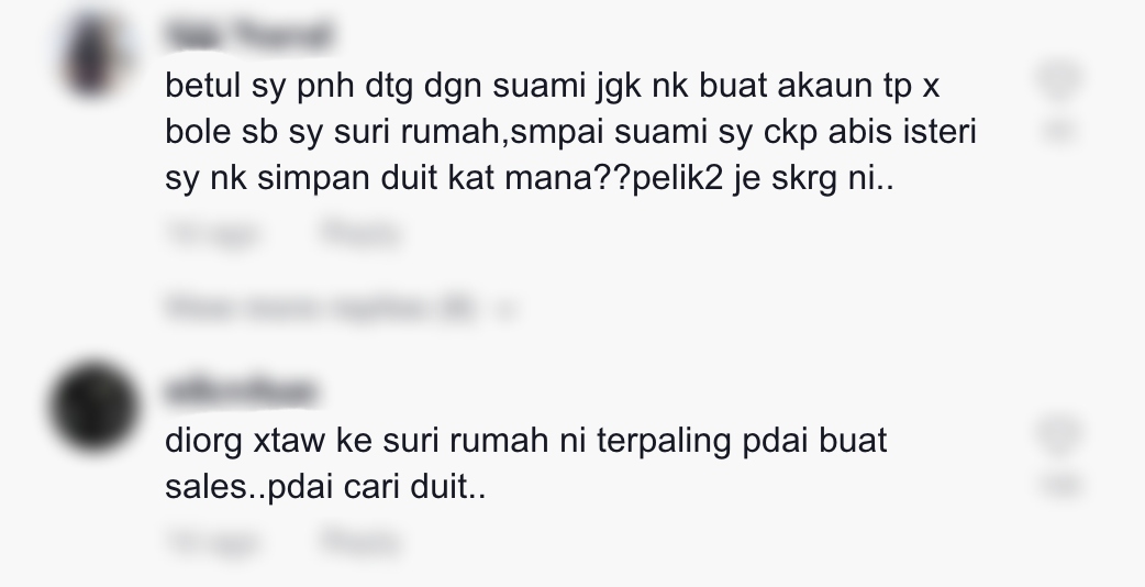 "Dia orang tak tahu ke suri rumah ni terpaling pandai buat sales. Pandai cari duit" – Netizen