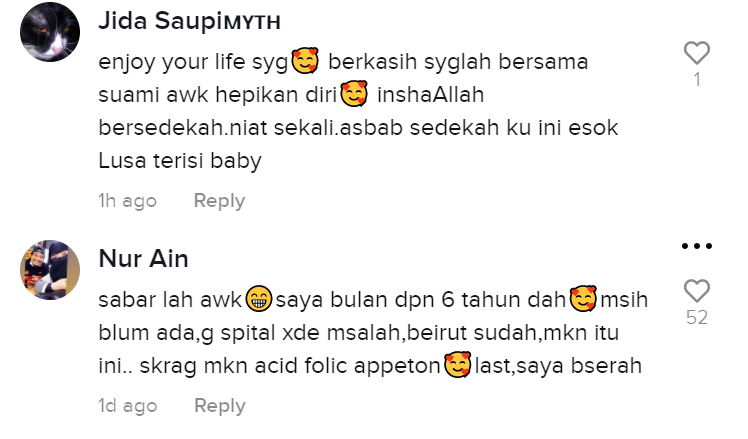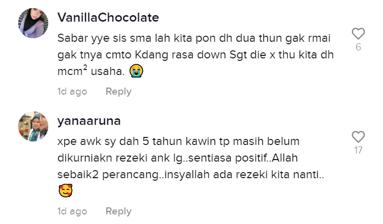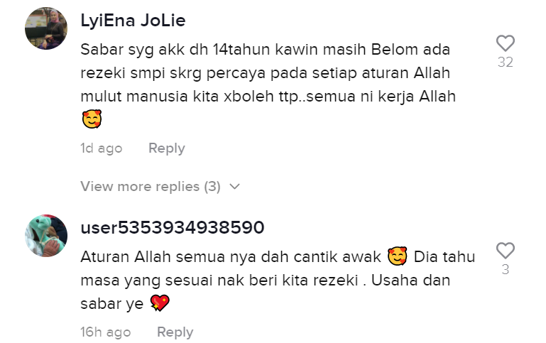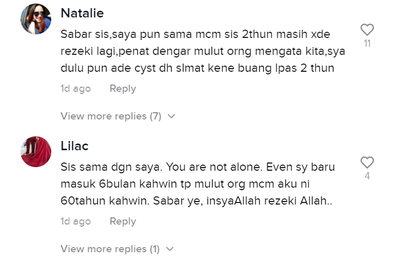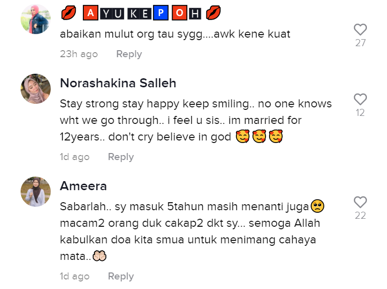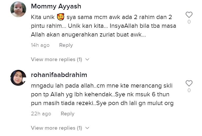 "Be strong dear insyaallah ada rezeki zuriat untuk awak nanti" – Netizen