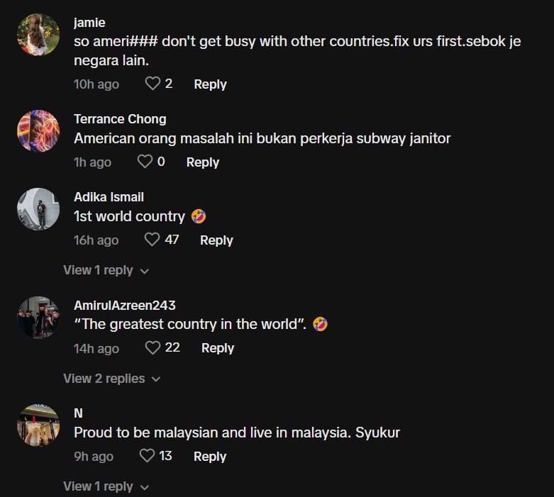 Berikut di bawah merupakan antara komen daripada netizen di TikTok: