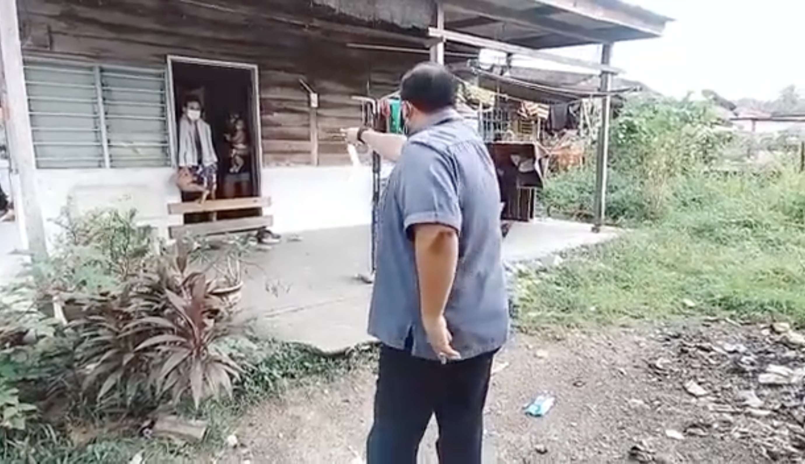 Menerusi video tersebut, kelihatan seorang lelaki sedang berada di depan rumah pesakit Covid-19. Beliau merupakan Penghulu Dewan Undangan Negeri (DUN) Titi Tinggi Beseri, Mata Ayer dan Chuping iaitu Reswan Ramli.