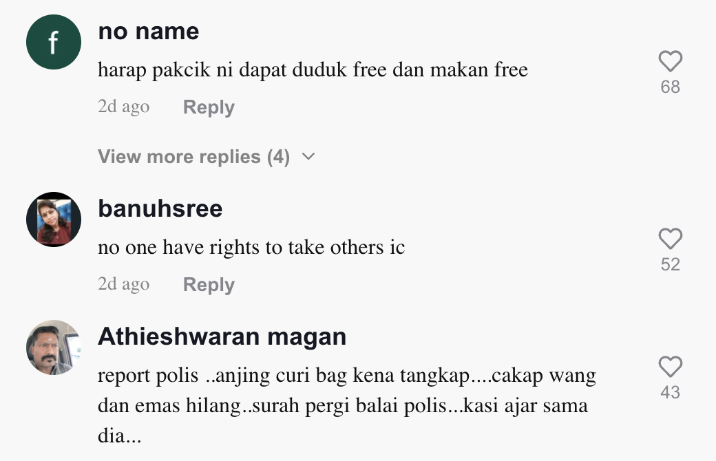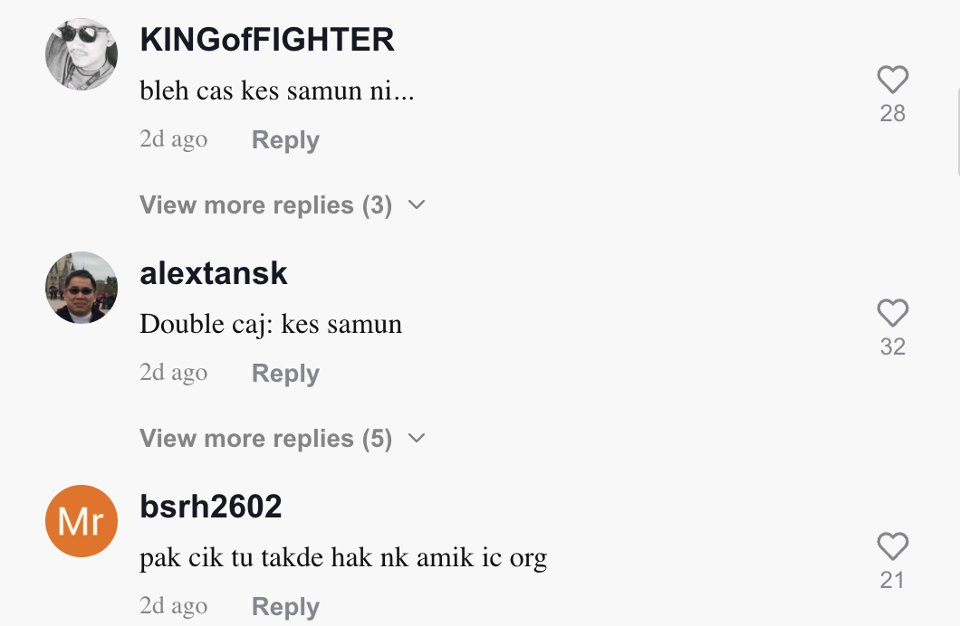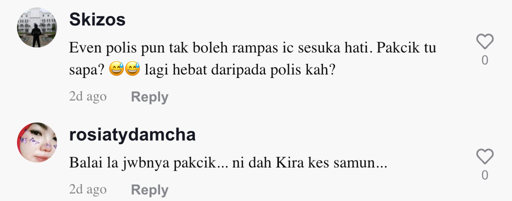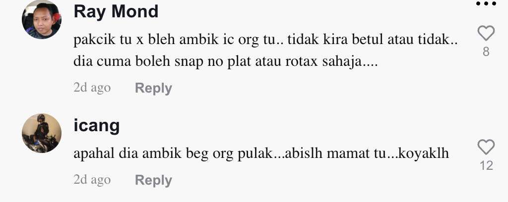 Dalam pada itu, tinjauan di ruangan komen mendapati rata-rata netizen turut mengecam tindakan lelaki tersebut kerana mengambil kad pengenalan orang sesuka hati.