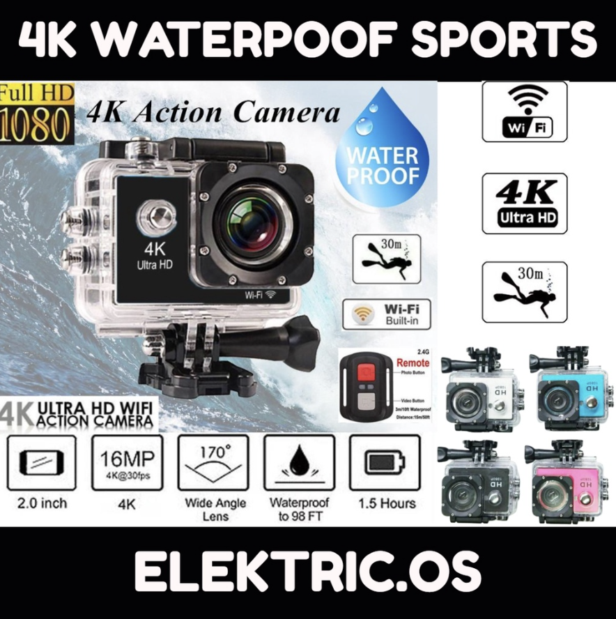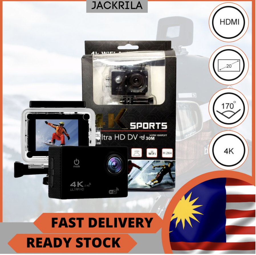 Dengan paparan skrin berkembar 2.0 inci, anda akan mendapat 4K definisi tinggi, alat kawalan dari jauh yang membolehkan anda pakai di tangan. Alat ini juga kalis air sedalam 30 meter. Videonya juga berdefinisi tinggi.
