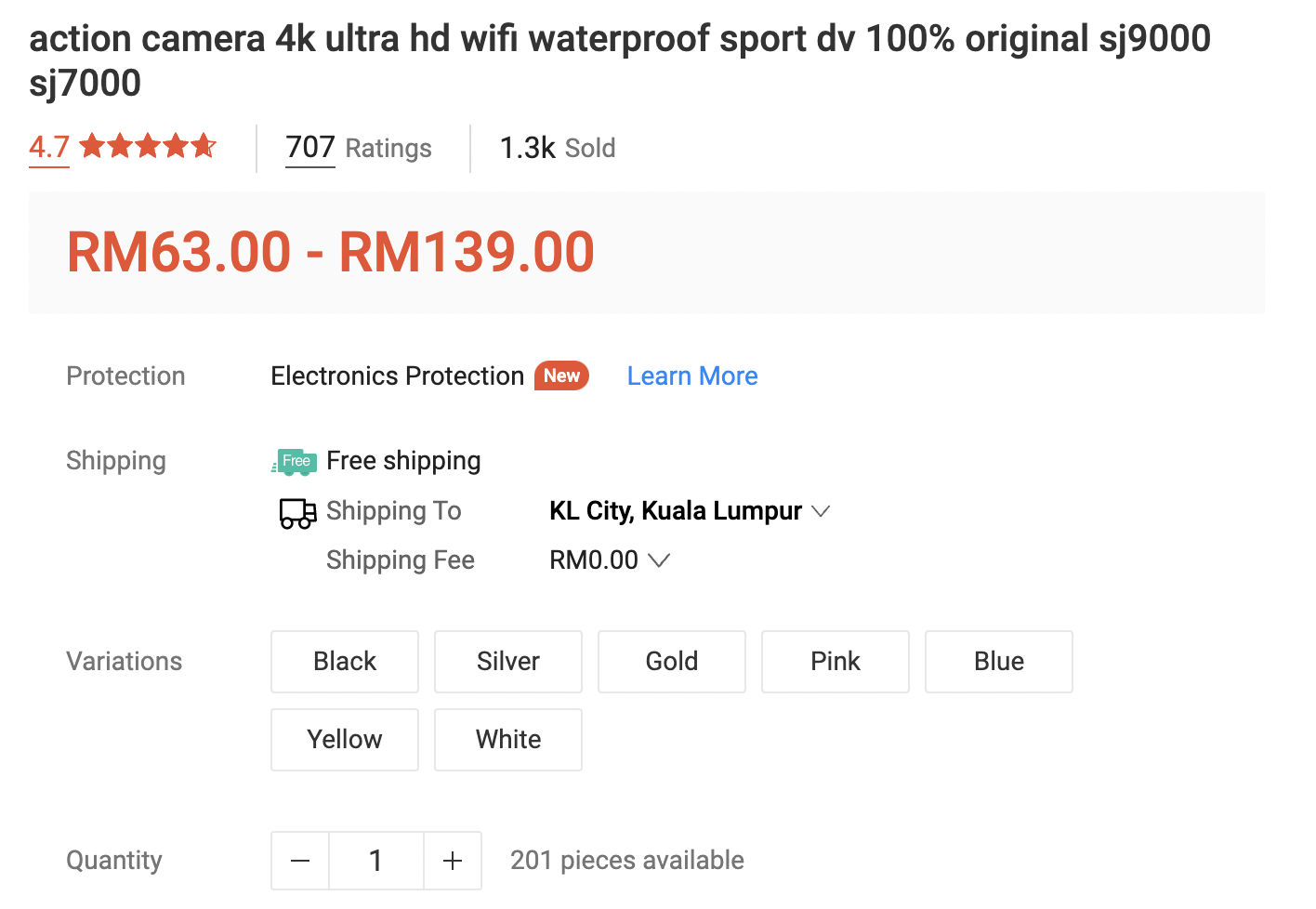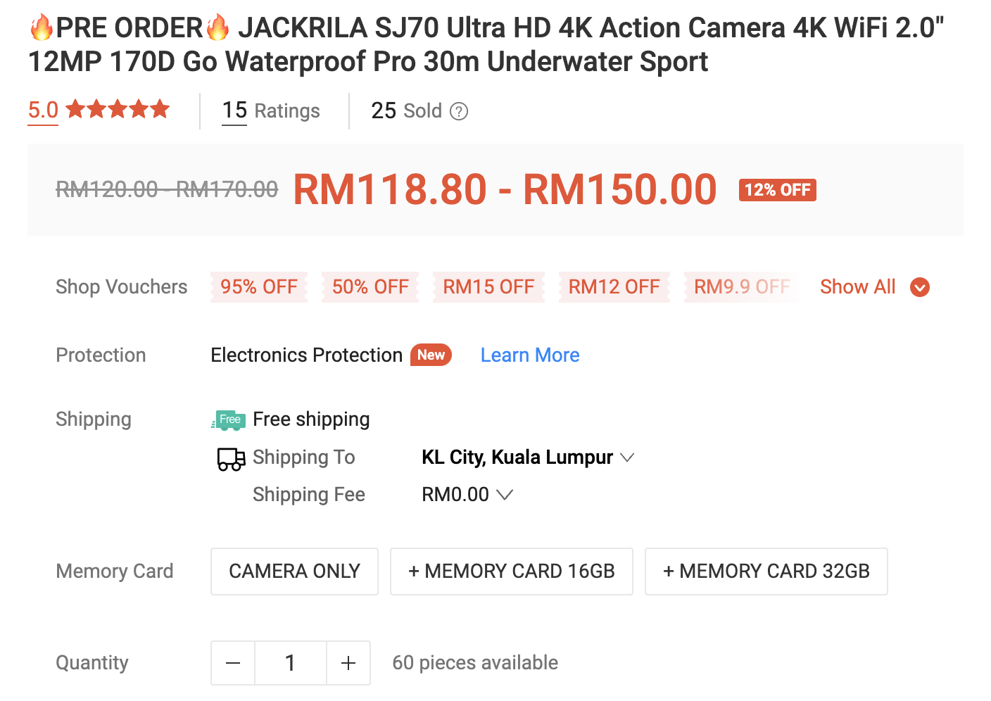 Ia juga didatangkan dengan kanta sudut lebar 12 megapiksel dan menyokong format rakaman video 4K, 2.7K, 1080P dan 720P. Anda boleh dapatkan kamera ini dalam pelbagai warna antaranya hitam, emas, perak, merah jambu, biru, dan kuning.