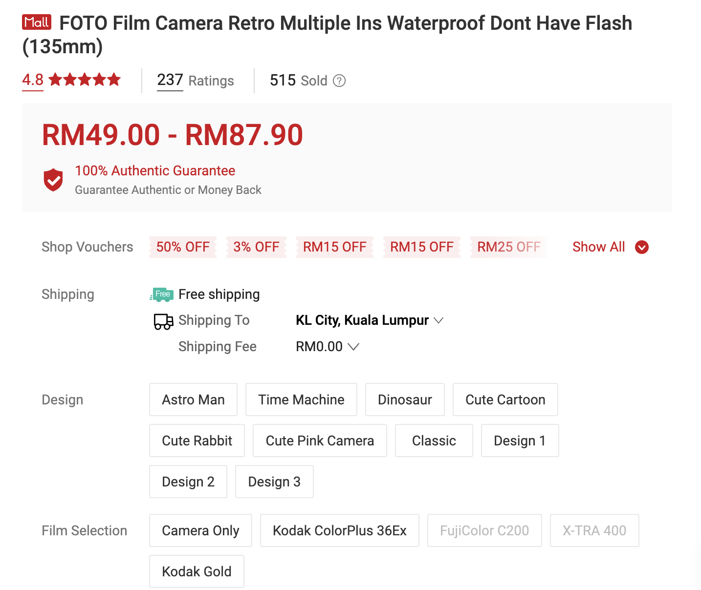 Kamera ini juga lain daripada yang lain kerana ia bukanlah action kamera tetapi ia masih kamera waterproof. Jika anda sukakan ala-ala klasik menggunakan film, kamera ini sangat sesuai untuk anda. Ia boleh mengambil gambar dengan kedalaman 1 hingga 2 meter (tidak sesuai untuk menyelam dalam).
