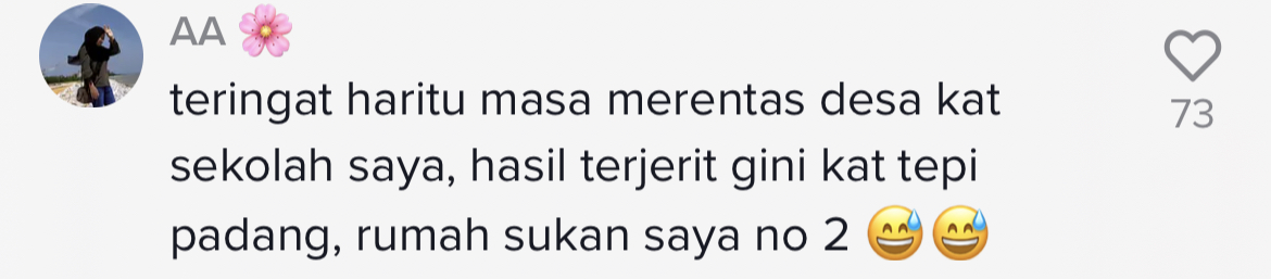 "Teringat hari itu masa merentas desa dekat sekolah saya, hasil terjerit gini dekat tepi padang, rumah sukan saya dapat nombor 2" – Netizen