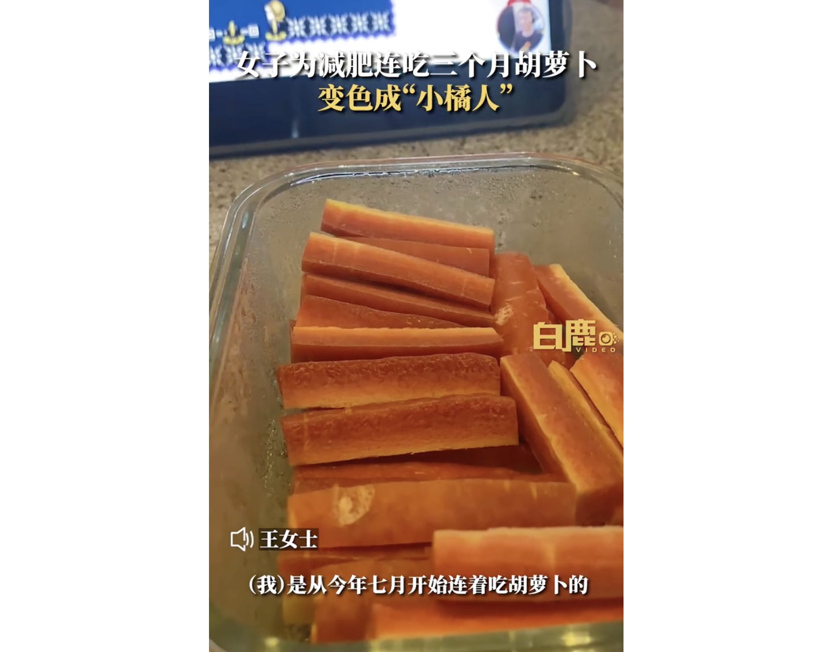 Wanita dari Beijing itu, berkongsi video di platform media sosial China Weibo bahawa, sejak Julai, dia telah makan kira-kira 200g hingga 500g lobak merah sehari sebagai pengganti makanan ringan.