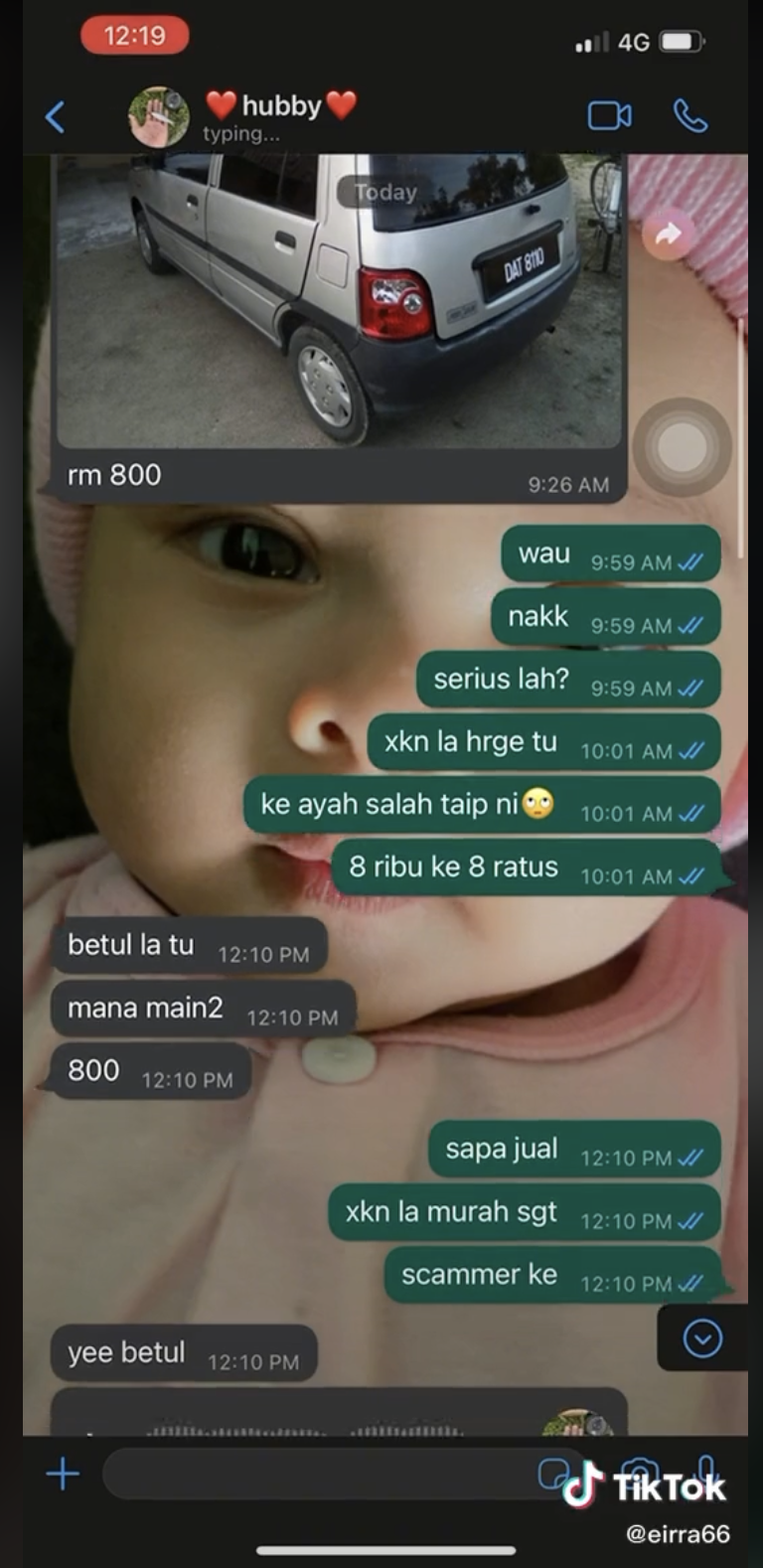 Si isteri tanpa memikir panjang terus mengiyakannya kerana kereta itu murah dan senang untuk dia bawa ke mana-mana. Wanita itu kemudian bertanya adakah benar harganya sebegitu ataupun ia adalah scammer.