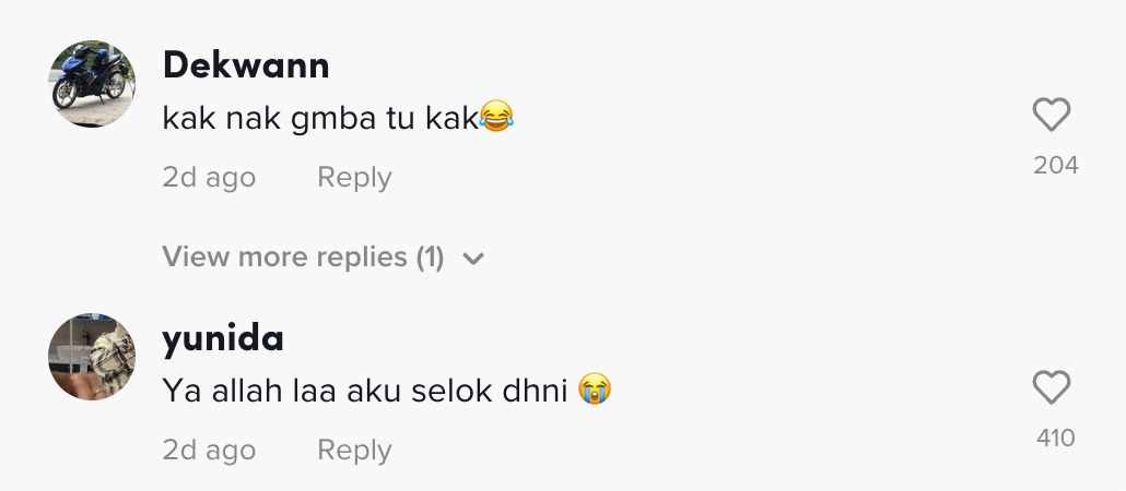 Berikut di bawah adalah antara komen menarik daripada netizen di TikTok: