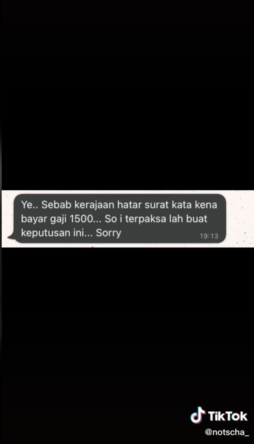 Namun, tular sebuah video di TikTok ini apabila seorang wanita berkongsi mesej perbualan antara dia dan juga majikannya yang membuangnya kerja selepas kerajaan mengumum kadar gaji minimum telah mencuri perhatian ramai.