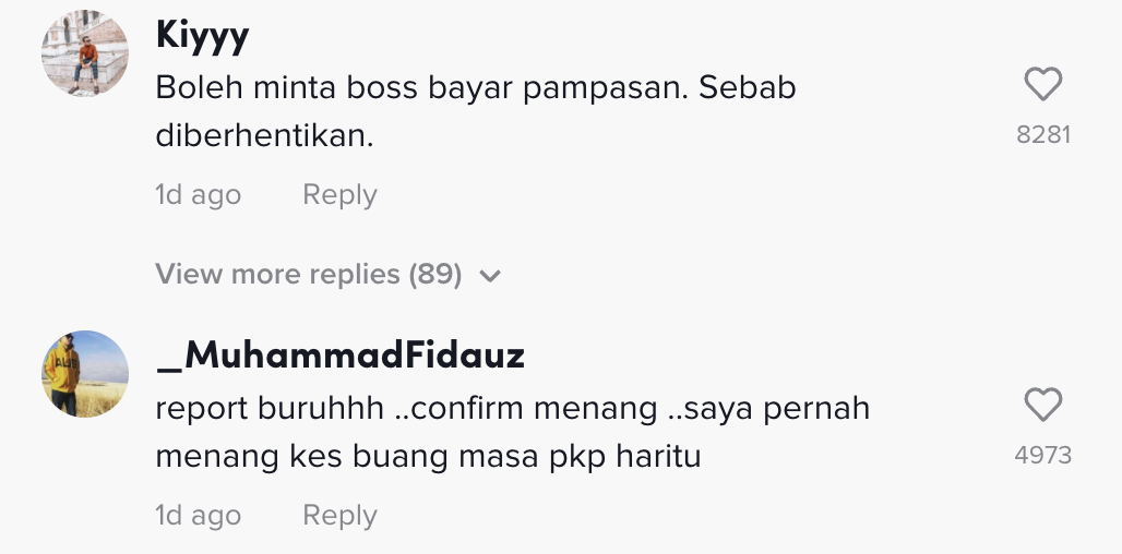 "Boleh minta bos bayar pampasan sebab diberhentikan" – Netizen
