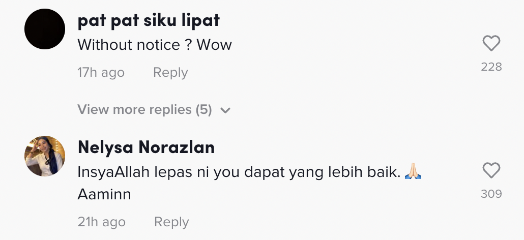 Berikut di bawah adalah antara komen daripada netizen di TikTok: