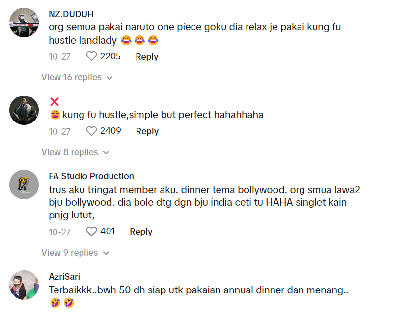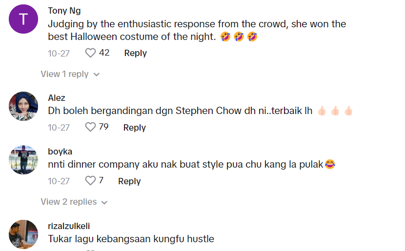 Tular baru-baru ini, sebuah video di TikTok memaparkan seorang wanita raih perhatian ramai tampil ke acara annual dinner mengenakan kostum watak Landlady dalam filem Kung Fu Hustle, dari hujung rambut ke hujung kaki, semuanya sama.