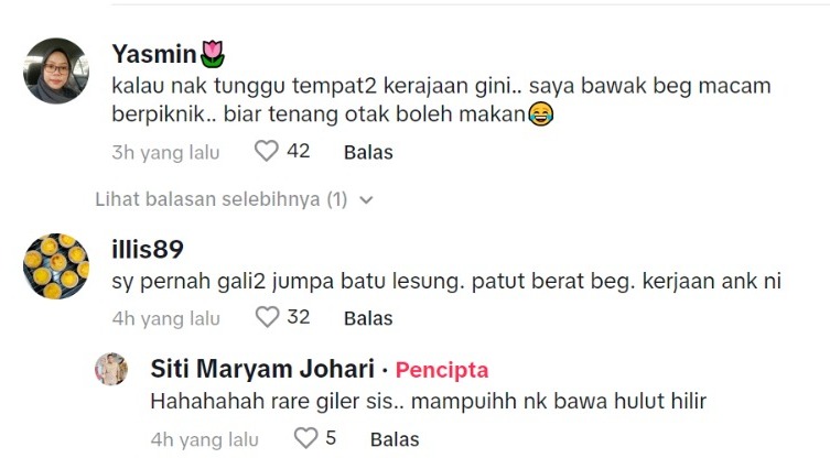 "Kalau nak tunggu tempat-tempat kerajaan gini, saya bawak beg macam berpiknik, biar tenang otak boleh makan haha" – Netizen